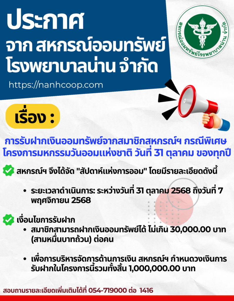 สหกรณ์ฯ แจกกระปุกออมสิน “ออมดี มีสุข”ให้แก่เจ้าหน้าที่ รพ.น่าน ที่สมัครเป็นสมาชิกสหกรณ์ฯ ใครอยากได้ “น้อง ออมดี มีสุข” รีบๆ มาสมัครกันน้าาา