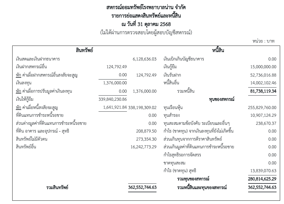 - รายการย่อแสดงสินทรัพย์และหนี้สิน ณ วันที่ 31 ตุลาคม 2568